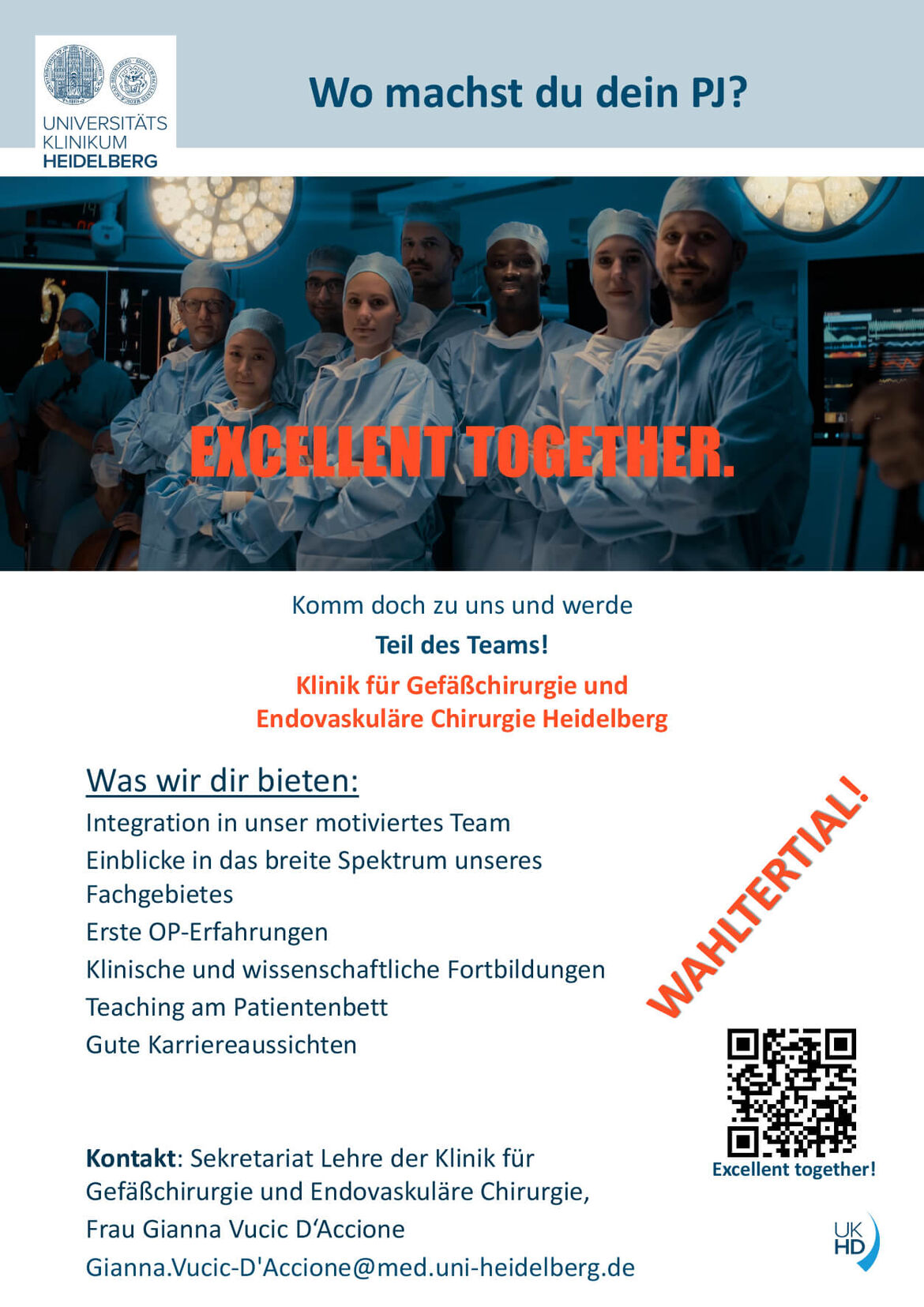 Für Fragen und Anmeldungen bezüglich des PJ Wahlfach Gefäßchirurgie wenden Sie sich bitte an unser Lehrsekretriat