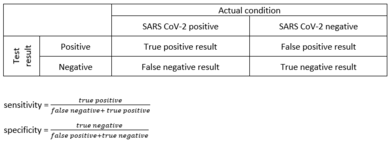 The sensitivity and specificity of a test reflect how reliably the test can determine whether a person is positive or negative for SARS CoV-2.
