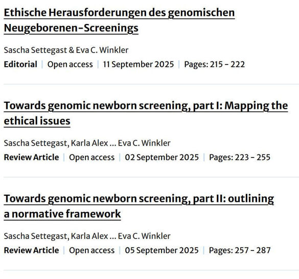 Just published: Special issue of "Ethik in der Medizin" on "Ethical issues in genomic newborn screening"
