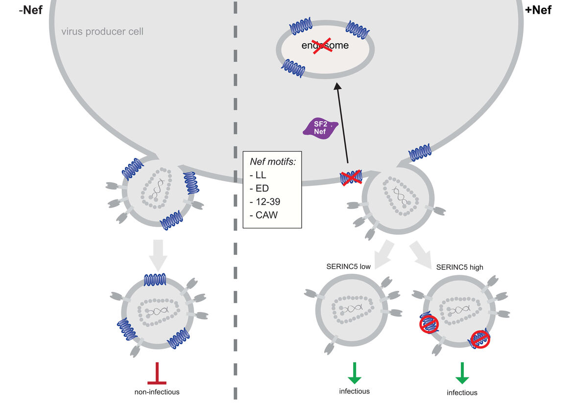 - Trautz, B., Pierini, V., Wombacher, R., Stolp, B., Chase, A.J., Pizzato, M. and Fackler, O.T. (2016). The Antagonism of HIV‑1 Nef to SERINC5 Particle Infectivity Restriction Involves the Counteraction of Virion-Associated Pools of the Restriction Factor. J. Virol., 90:10915-10927.