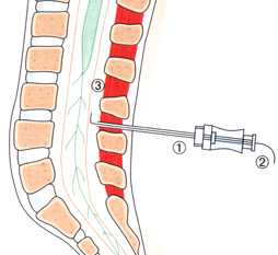 Schmerzfreie Eingriffe unterhalb des Bauchnabels werden auch durch die Spinalanästhesie ermöglicht. Unterbauch, Beckenbereich und Beine werden durch die Betäubung der vom Operationsgebiet zum Rückenmark führenden Nerven gefühllos. Dafür wird ein örtliches Betäubungsmittel in den mit Nervenflüssigkeit gefüllten Raum der Lendenwirbelsäule eingespritzt (Liquorraum). Die Spinalanästhesie wird im Sitzen oder in Seitenlage durchgeführt. Nach einer örtlichen Betäubung führt der Anästhesist eine sehr dünne Nadel in Ihren Rücken auf Höhe der Lendenwirbelsäule ein. Hat er durch die Zwischenwirbelräume den Liquorraum erreicht, spritzt er eine geringe Menge Lokalanästhetikum ein. Sie verspüren ein Wärmegefühl in den Beinen und können diese schon bald nicht mehr oder nur noch eingeschränkt bewegen. Bei Spinalanästhesien in Seitenlage ist es möglich, nur ein einzelnes Bein zu betäuben. Diese Wirkung hält bis zu etwa 3-4 Stunden an.