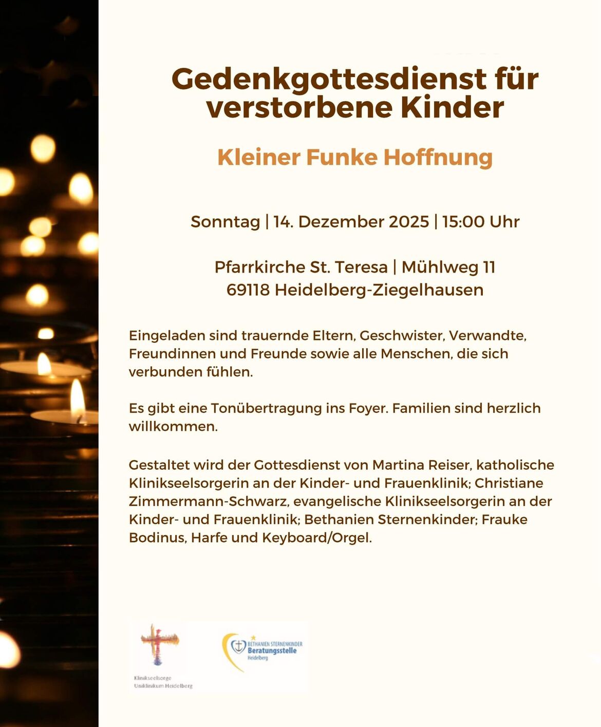 Die Pforte der Frauenklinik kann Ihnen auch einen Seelsorger/eine Seelsorgerin einer anderen christlichen Religionsgemeinschaft oder einer in Heidelberg ansässigen Religionsgemeinschaft vermitteln.