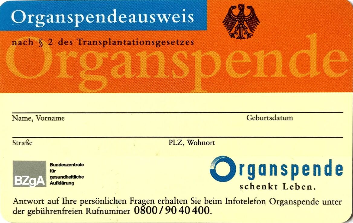 Die Zustimmung zur Organspende ist eine persönliche Entscheidung, die jeder Mensch für sich selbst trifft. Hat ein Mensch diese Entscheidung nicht getroffen, wird diese an dessen Angehörige übertragen. Im Zustand des Verlustes und der Trauer ist das nicht einfach für die Familienangehörigen. Deshalb ist es wichtig, schon zu Lebzeiten seinen Willen für oder gegen eine Organspende in einem Gespräch mit seinen Angehörigen oder nahestehenden Personen kundzutun und dies bestenfalls mit einem Organspendeausweis zu dokumentieren.