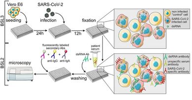 - Pape C, Remme R, Wolny A, Olberg S, Wolf S, Cerrone L, Cortese M, Klaus S, Lucic B, Ullrich S, Anders-Össwein M, Wolf S, Cerikan B, Neufeldt CJ, Ganter M, Schnitzler P, Merle U, Lusic M, Boulant S, Stanifer M, Bartenschlager R, Hamprecht FA, Kreshuk A, Tischer C, Kräusslich HG, Müller B, Laketa V. Microscopy-based assay for semi-quantitative detection of SARS-CoV-2 specific antibody levels in human sera. Bioessays. 2021 Mar;43(3):e2000257. doi: 10.1002/bies.202000257.
